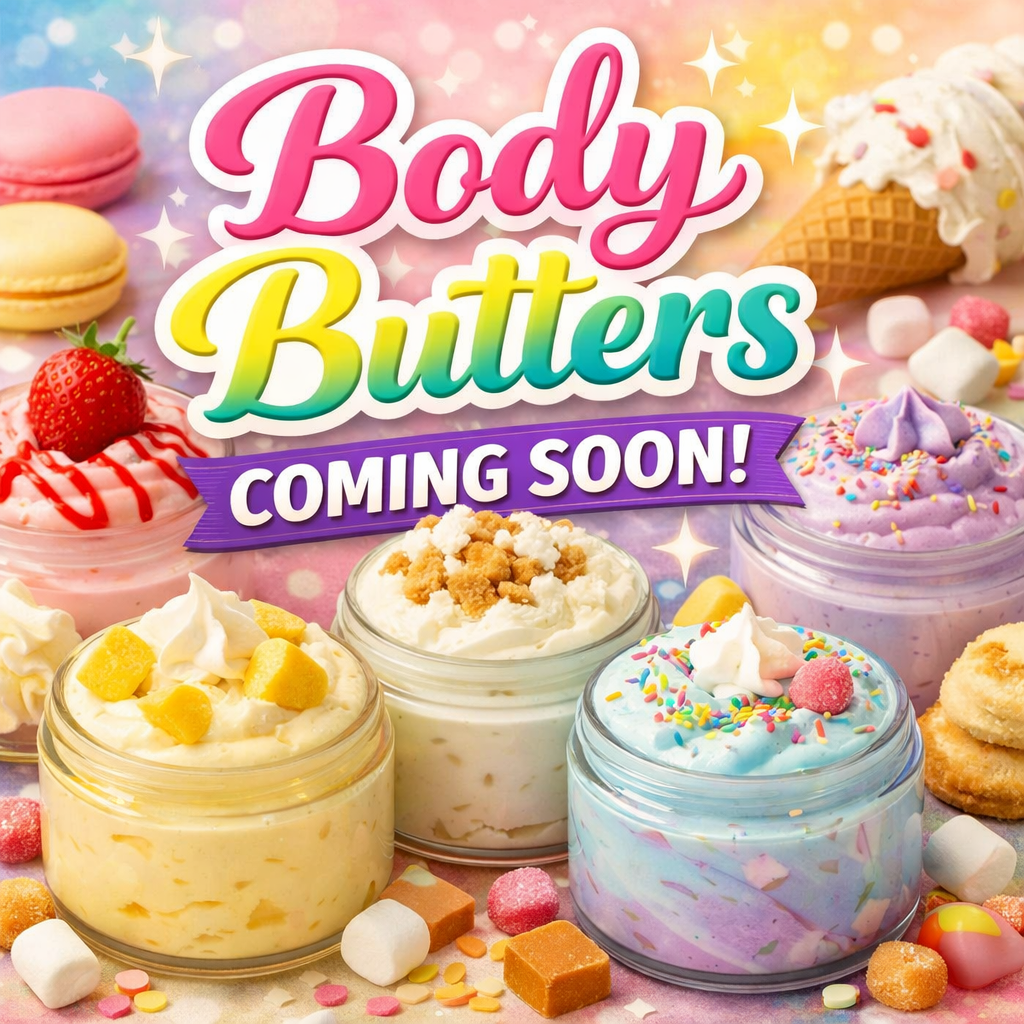 Get ready for our new line of body butters, handcrafted with natural ingredients and infused with the same delightful scents as our candles. Imagine indulging and Fruit Loops or Strawberry Shortcake fragrances while keeping your skin moisturize and glowing. Stay tuned for the launch!